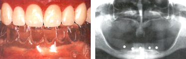 또한 상실부 후방부에 존재하는 치아가 없거나, 다수 치아의 상실이 연속적으로 존재하는 경우 이는 고정성 방법으로 회복하기에는 매우 곤란하게 됩니다. 이 경우는 착탈식의 틀니로써 회복시켜주는 방법이 통상적이라고는 할 수 있으나 인공치아 임플란트를 사용한다면 환자가 불편해 하는 착탈식 틀니대신 고정성 치아의 회복이 가능하게 됩니다.